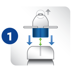 - Apply the actuator on the aerosol can with the metal tip facing up. Do not push down on the actuator until ready to cool.